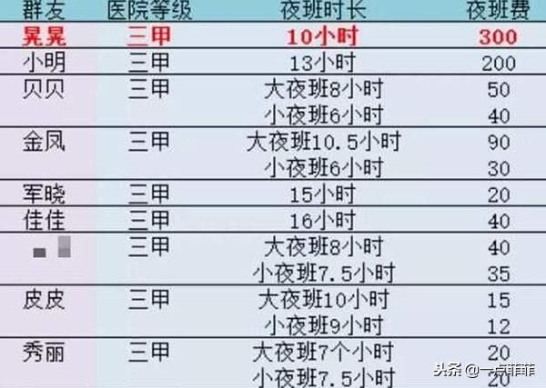 最近有一个护士在朋友圈发了一个护士岗位的夜班工资补贴: