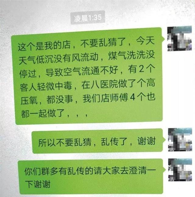 早报君提醒大家,请勿造谣传谣!天气冷了,家里使用煤气的要注意安全,警惕煤气中毒;各大商家也应注意排查安全隐患,积极预防煤气中毒事件,保障顾客的生命安全。