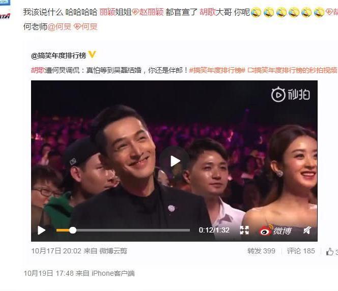 在一次节目中,胡歌遭到了何炅调侃:真怕等到吴磊结婚,你还是伴郎!现在呢,轮到赵丽颖结婚,胡歌的微博也沦陷了哈哈哈哈~现在的赵丽颖都官宣了,胡歌还是一片平静,让很多网友都担心起了老胡的终身大事。