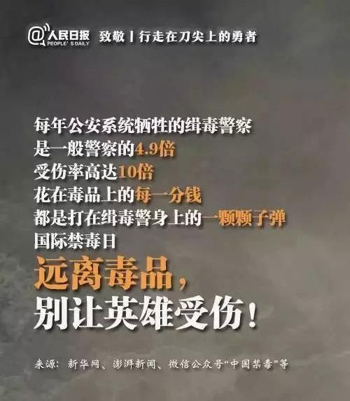 据统计2016年,中国共有362名缉毒警牺牲在岗位上,几乎每天都会牺牲一名。死亡禁毒民警平均年龄41岁,比我国人均寿命低32.5岁。其中,最小的18岁,最大的68岁。