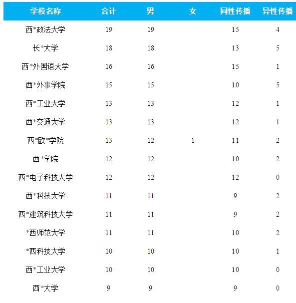 这是西北地区某省疾病预防控制中心最新公布的该省累计感染HIV(艾滋病毒)人数前15所高校名单。出现在名单中的大学,既有985名校,也有民办高校。
