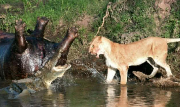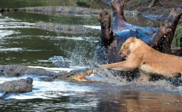 帮助对方,在前段时间,有一只受伤的小狐狸在路上遇到了一对夫妻狮子,狮王口水直流想一口咬住给孩子补补身体,不料被母狮一顿训斥最后却还把小狐狸当成了自己的孩子养。这不一头母狮去河边喝水,见到一只大胖河马四脚朝天躺在水里,当走近一看立马扭头想跑,不过为时已晚。