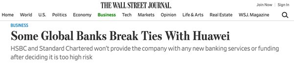 2. 雪上加霜,汇丰渣打切断与华为的业务关系