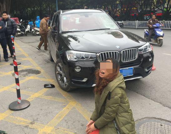 [分享]咋回事?女子在街头将自家宝马车砸了 还跪着哭