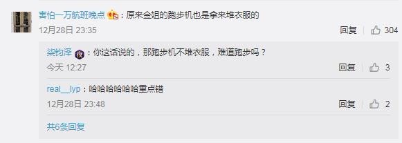 这次拍照呢,她的跑步机出镜了,细心的粉丝评论:“原来她的跑步机也是用来搭衣服的。”