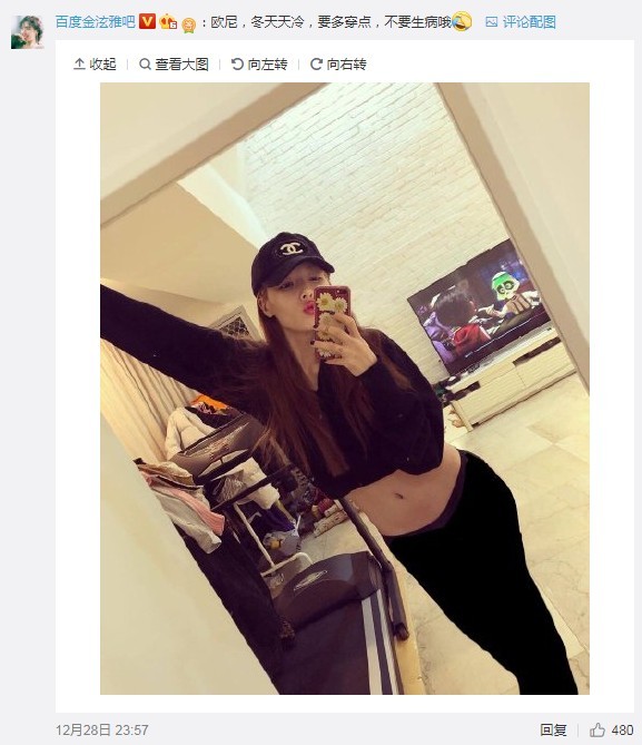 作为韩国的性感女星,她在冬天拍照也是穿得极少的。