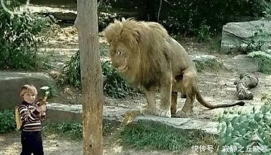 有句话叫初生牛犊不怕虎,说的就是这位小孩子,后面有一只凶猛的大狮子,他竟然还在那里玩耍,狮子在正在一脸贪婪的看着他,你快跑啊,不跑就要就要被狮子吃掉了,你的妈妈呢,为什么你自己在这里呢?可怜的小朋友。