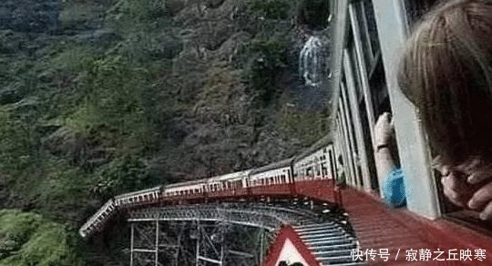 我们看上去像是火车脱了轨,栽向了山地,感觉非常危险,但是你看后面的乘客们并没有要慌乱下车的景象,而且有乘客还趴在窗口上看风景,前面还有一只胳膊放在窗口上休闲自得的样子。