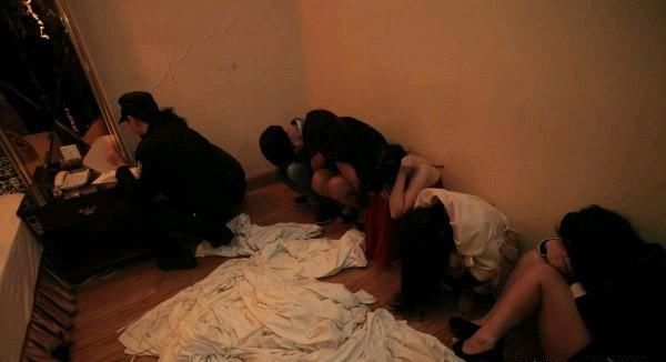 这个就壮观了,看现场也就一位男的,这么多卖淫女也不怕肾虚,这下被抓了,只能躲在墙角瑟瑟发抖,把头伸在大腿上当鸵鸟了,真是活该受罪。