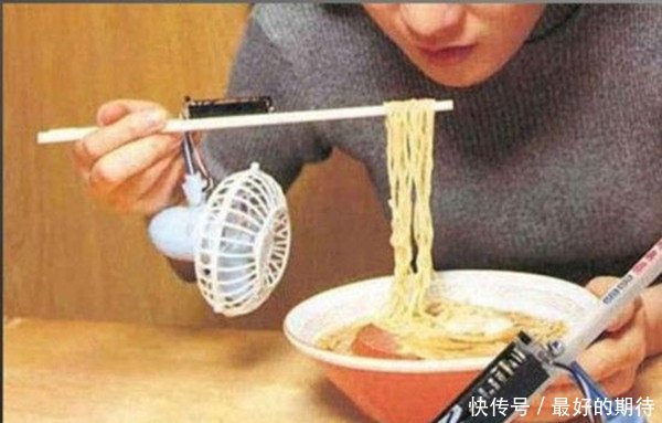 图中的这个风扇是吃面专用的,不但可以吹凉面条,还可以给因吃面而满头大汗的你带来一丝凉爽。