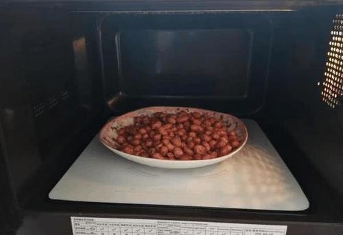调料搅拌均匀后,把花生米放到微波炉里,大火烘烤三分钟,时间到后,拿出来,把花生米再搅拌均匀翻面,继续放入微波炉,大火烘烤两分钟,就可以拿出来了,因为每一家的,微波炉功率和情况都不太一样,如果在烘烤两分钟后,花生米还没有特别干。