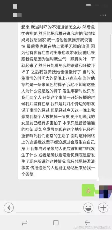 @哈尔滨大学城那些事儿官方微博收到当事人学生干部投稿,称已联系到事件当事人,写下了整个过程,并称会去有关部门报案,相信有关部门肯定会还原事件的真相!