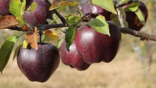 黑钻苹果,不仅果味浓郁,果汁丰富,口感好,更重要的是,这种黑钻苹果成熟后可挂在树上2个月,水果还不错,家里可多种几颗,来年现吃现摘,非常新鲜。