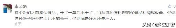 这从某种程度上其实也透露了为何保健行业的乱象为何屡禁不止,对商家来说有暴利可寻,很多商家追寻着保健品“无利、无害”的原则,只要不吃死人不把事闹大,基本就能保证源源不断的收入。而对老年人来说,又对身体健康有着高度关注。