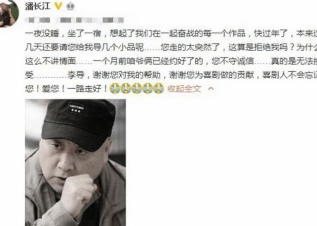 12月26日,大家还沉浸在一片马上过节的喜庆中,而潘长江突然发文哀悼自己的恩师。他表示:“没有他就没有我的今天......他是我的恩人......他是我的老师......我的作品百分之八十都是经过他。”也是这篇微博让大家知道导演李春明是潘长江的恩师。
