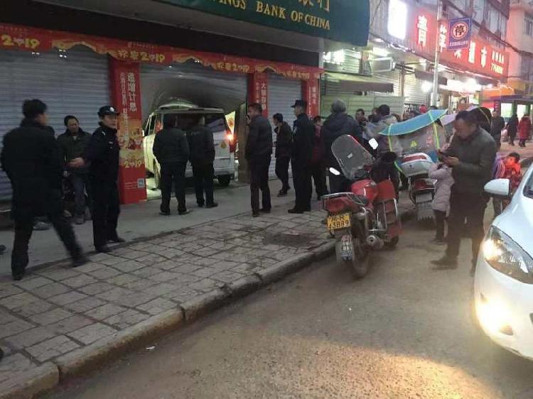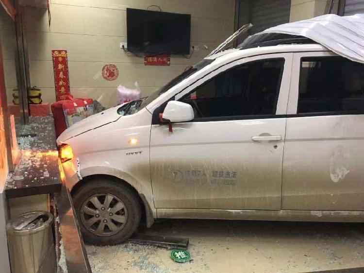 事发时,目击者晏先生正坐在自家门店外休息,看见一辆白色的五菱宏光面包车通过街边的路驶入人行道,“可能是想把车停放在银行外的人行道上,不知什么原因,这辆白色的面包车突然失控撞向了银行的卷帘门。”
