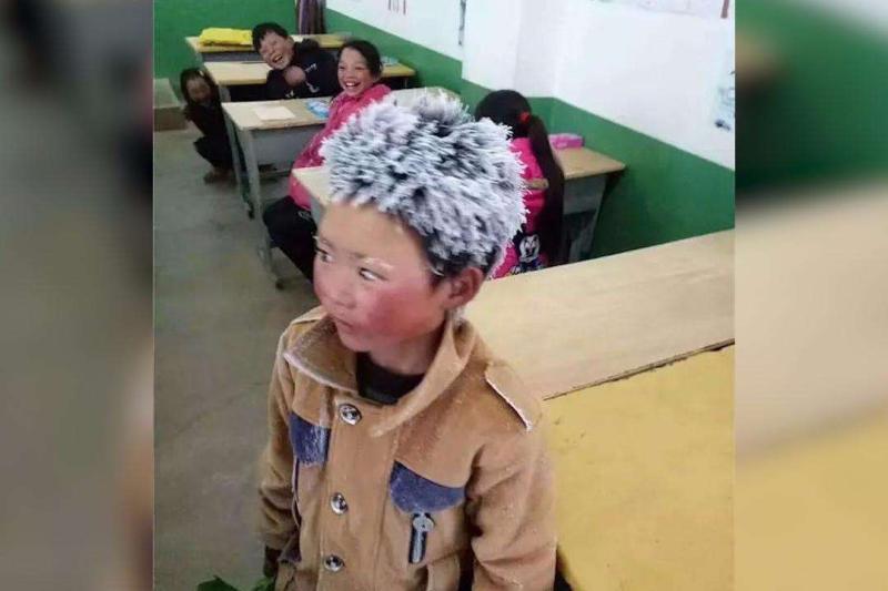 冬至刚过,云南昭通转山包地区的温度已经降到五六度,沿途松树已“穿上”一层冰衣。2018年一月份,当地一名头顶着冰霜上学的学生照片经媒体报道后广泛传播,照片主人公王福满被称作“冰花男孩”,引起关注。