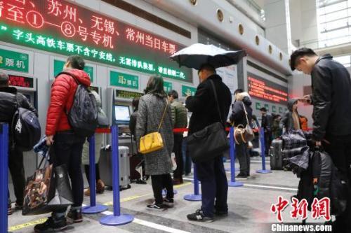 资料图:旅客在铁路上海站售票大厅排队购票。 殷立勤 摄