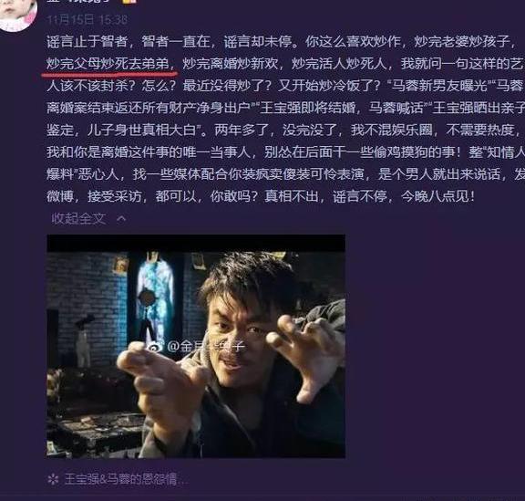 本以为二人的离婚案,会随着法院的判决而尘埃落定,没想到最近马蓉又出来蹭热度了,前几天在微博喊话要揭穿王宝强的黑幕,引得大量吃瓜群众开始围观,马蓉直言王宝强喜欢炒作,炒完老婆炒孩子,炒完父母炒死去的弟弟。