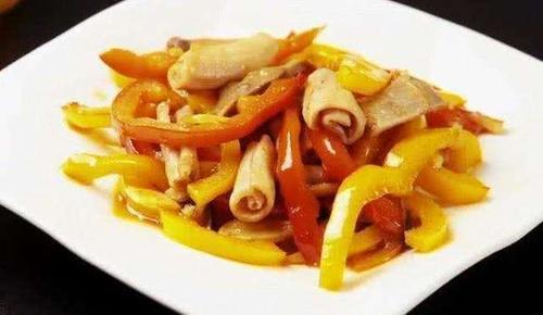 做法:1.将洗净的彩椒切成丝;洗好的鸭肠切成段;