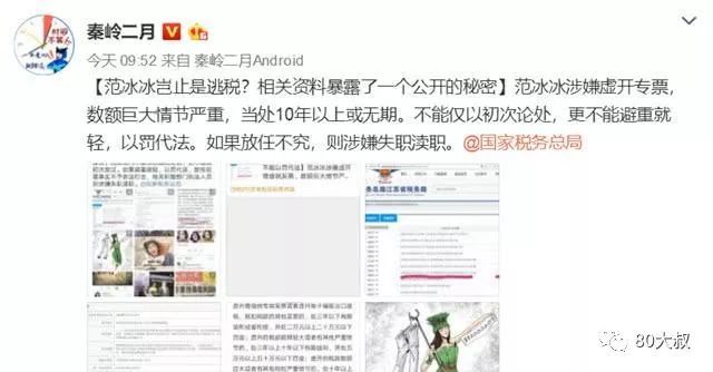 据资料显示,范冰冰独资的公司(无锡美涛佳艺影视文化工作室)无真实业务向无锡爱美神影视文化有限公司开具增值税专用发票,为范冰冰
