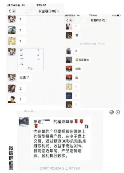 投资盈利消息,让何先生再也按捺不住。群里的网友"注金"5000元后,按照群中"分析师""预测师"所谓的"投资策略",不到一分钟,收益可以高达1000余元。