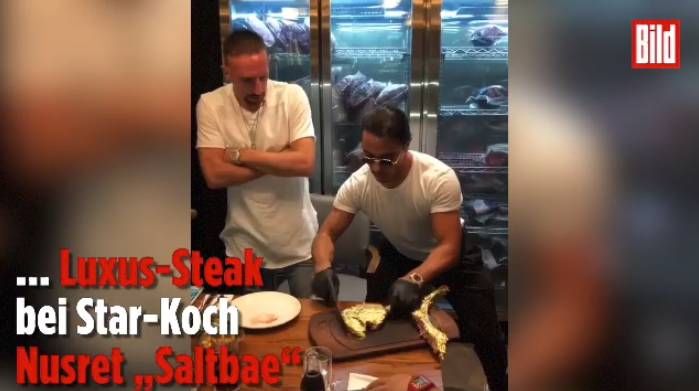 近日拜仁球星里贝里在“撒盐哥”的餐厅品尝了一块金箔牛排,有法媒称这块牛排价值高达1200欧元,引来了不少媒体和球迷的抨击。