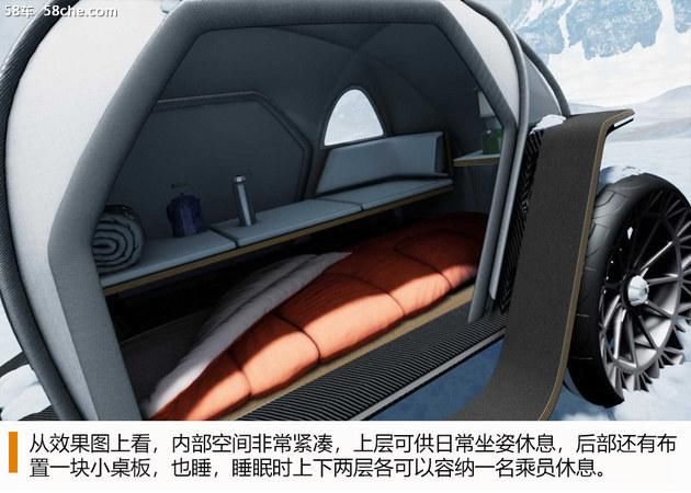 这款露营车的轻量化设计已经达到了极致,全车框架采用碳纤维结构,整体外观类似一个圆形帐篷,采用免充气轮毂一体式车轮,并配有盘式刹车系统,内部拥有可容纳1-2人的休息或睡眠空间,宝马并未公布这款概念露营车是否会量产,但北面采用Futurelight面料的衣服将于今年开始售卖。