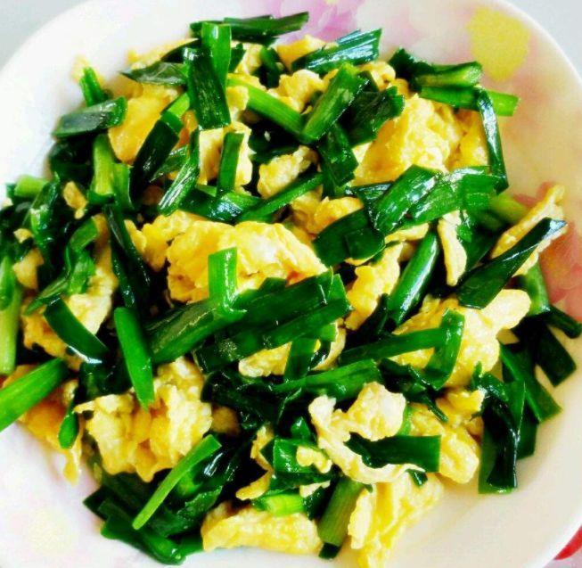 配料:鸡蛋150克,韭菜100克,油50克,盐2克