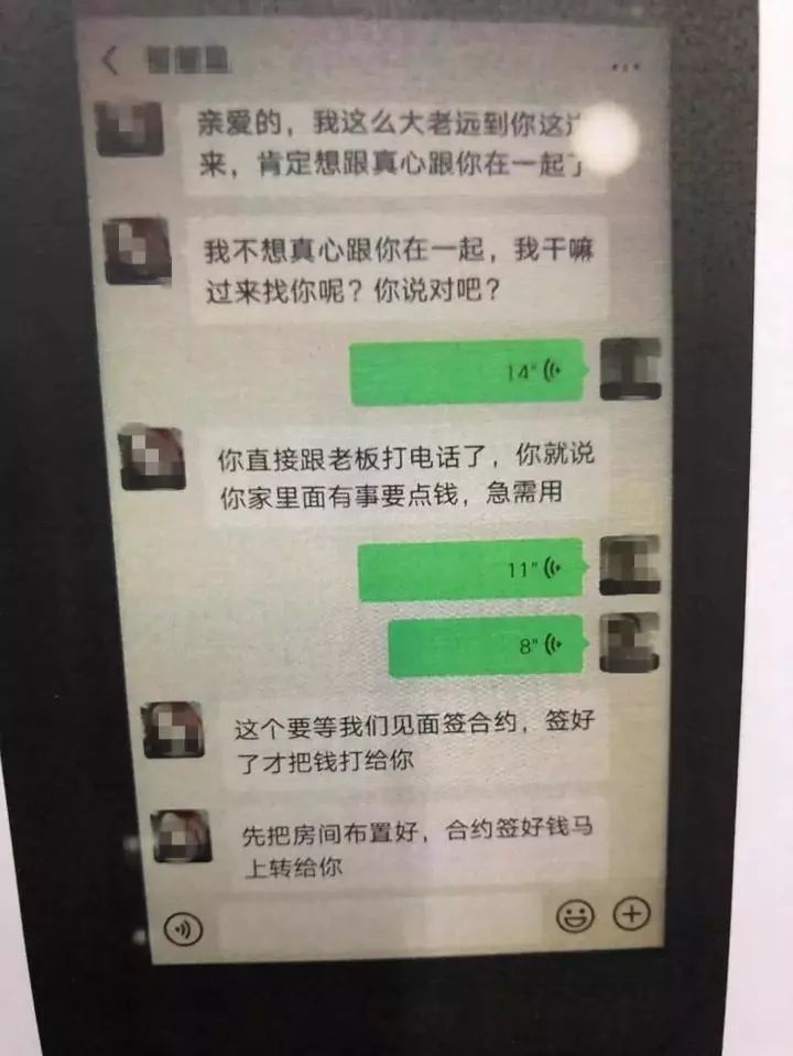1月3日,充满金钱气息的微信“女小张”又来消息了:“她”已经来到杭州、开好房间。