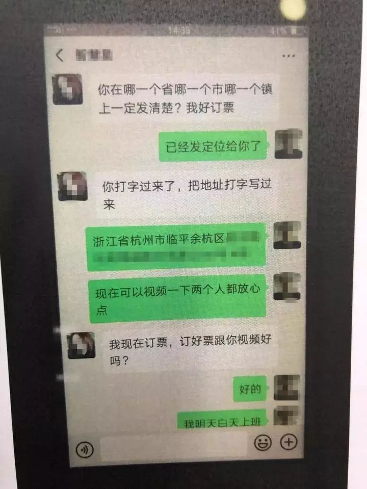 可是女小张只是继续问他所在的地址,还声称买了来杭的机票。