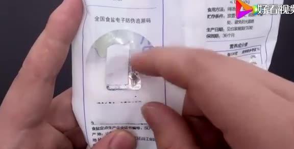 第三、我们可以看看食盐的防伪标志,真盐都是有贴防伪标志的,而且贴的位置非常固定摸起来质感也非常好,如果是假盐呢那么上面的这个防伪标志则是贴上去的。用手都可以将其抠掉。第四、我们看看食盐的颜色,先倒出一些食盐观察食盐的颜色。如果是真盐的话那么看起来就会非常干净没有杂质,而假盐一看亮度就不会太高并且有杂质,在分量上假盐一般达不到真盐的标准。