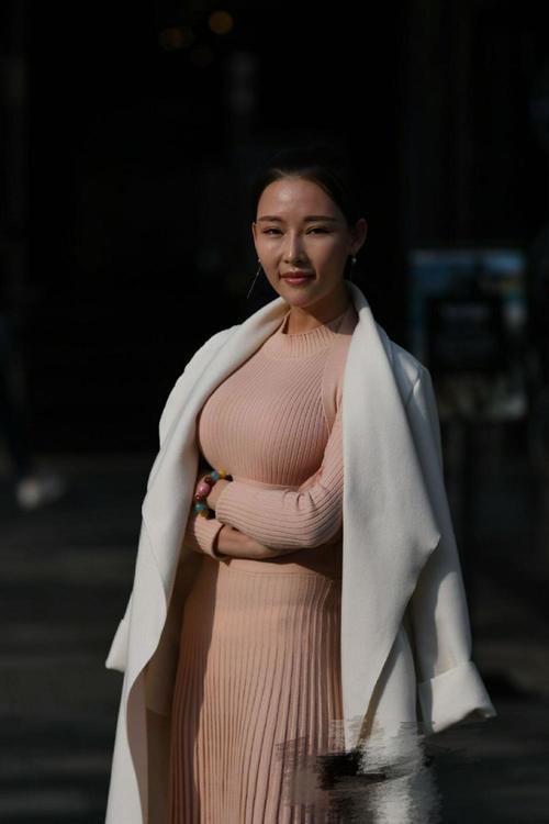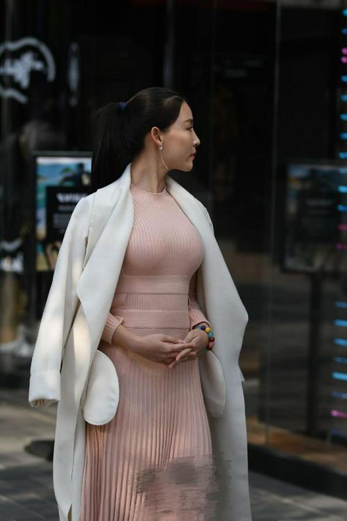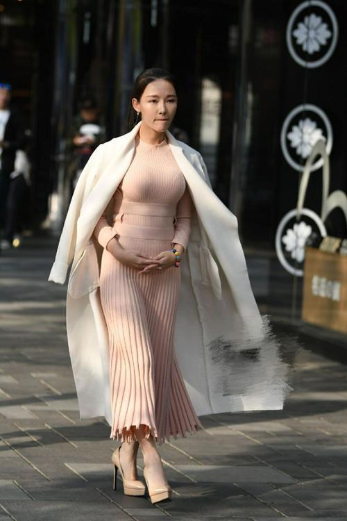 长款的毛衣外套搭配长款的毛衣裙,是最合适不过的。摇摆的裙尾,衬托出小姐姐婀娜的身姿。风轻吹过似柳叶摇摆。一颦一簇都给人优雅的感觉。粉色和白色是比较优雅的搭配色系。不像黑色,灰色那样过于沉闷。也不像大红色那样明艳,有的是小女人的妩媚。
