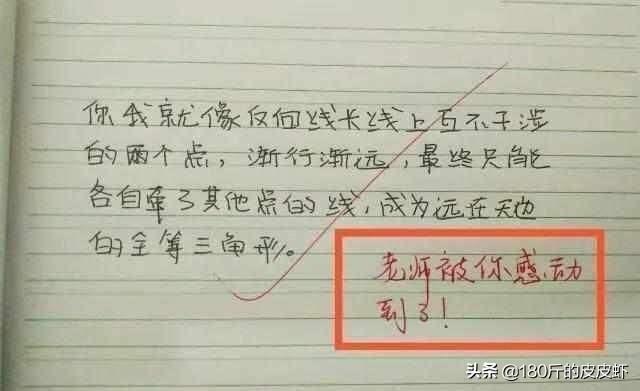 俗话说学好数理化走遍天下都不怕,现在不仅如此,学好数理化,写情书也不用慌。有些学生很巧妙地运用到自己所学的数学知识,写出了一封学霸级的情书,老师看完感动不已,写下评语:怪不得你数学成绩真的那么好!看来老师也很满意。像小果这种学渣是写不出来的。