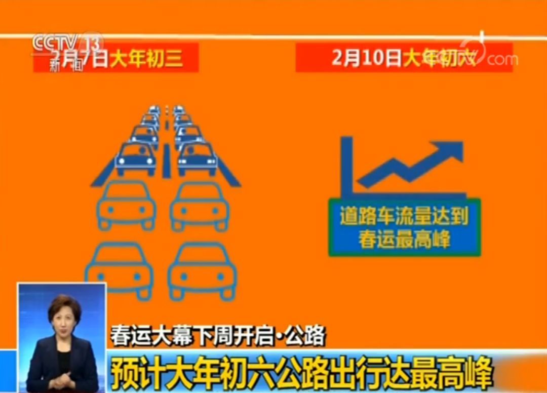 交通部门预计,春节假日期间,从2月7日(大年初三)开始,出行交通流量开始增多,到了2月10日(大年初六),道路车流量预计达到整个春运期间最高峰。