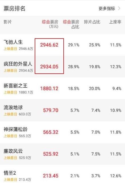而《飞驰人生》的男主角有着新一代的搞笑天才沈腾,《疯狂的外星人》则是有黄渤和沈腾两位搞笑天才。这两部作品的预售成绩不分伯仲,已经占据了预售票房的前两位,且远超周星驰的《新喜剧之王》。而有着沈腾出演的这两部作品,应该就看这两部哪一部的口碑会比较好了,大多观众看好《疯狂的外星人》,因为一部电影有黄渤或者沈腾一个人就很搞笑了,这部作品却是两人都是男主角。