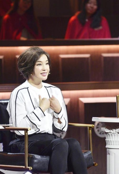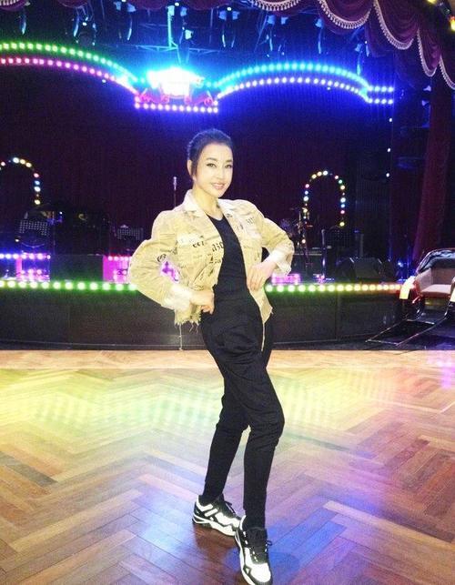 图中刘晓庆身穿着一套蓝色的丝绒西装,内搭一件黑色的吊带背心,气场全开,一副时尚女强人的即视感,手插口袋的造型,而且在西装的下面搭配了一双小白鞋可以说十分的有休闲感而且显得活力满满,整体来看还是十分减龄的。