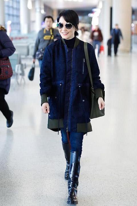 俞飞鸿身穿休闲的羽绒服,清爽的短发让她看起来知性又优雅,脚上穿着的长筒靴修饰出她修长的双腿十分吸睛,真是令人羡慕到了这样的年龄还能够保持自己的身材,不得不说俞飞鸿真的是一位冻龄女神!