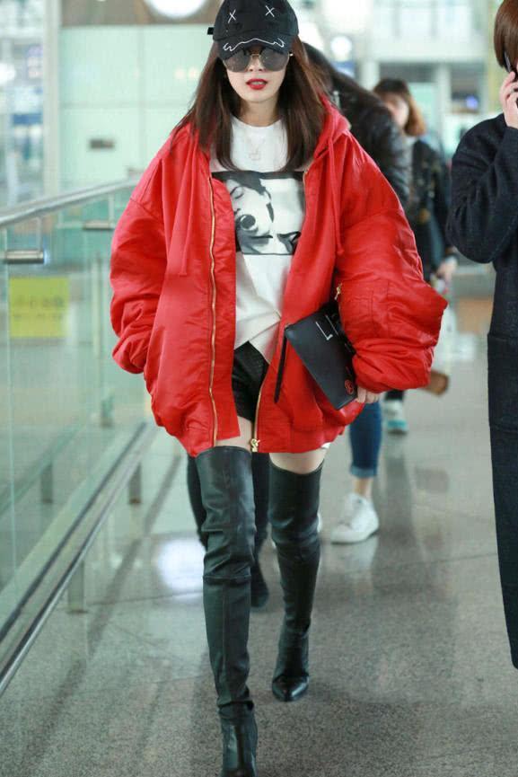 杨幂选择了醒目的黑红搭配,让她轻松地成为所有人的视觉焦点,男友风的羽绒服搭配一件白色的T恤,展现出美式复古时髦,显腿长的皮质长筒靴,让她的少女腿得到了完美的修饰,有了红唇的加持,性感又活力的杨幂又一次霸气地归来!