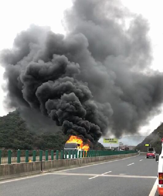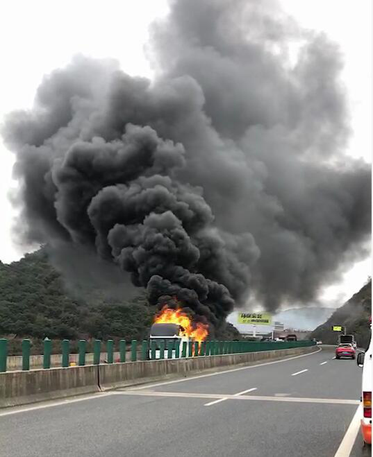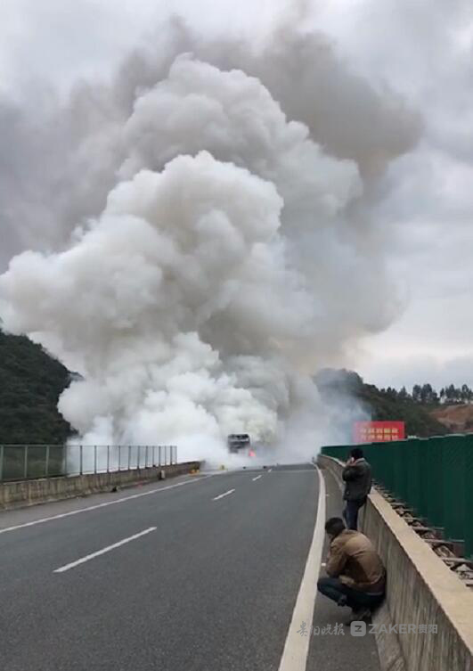 1 月 22 日,一辆从广东开往昆明的大巴车在行驶过程中自燃,现场火光冲天浓烟滚滚,所幸疏散及时,57 名乘客均安然无恙。
