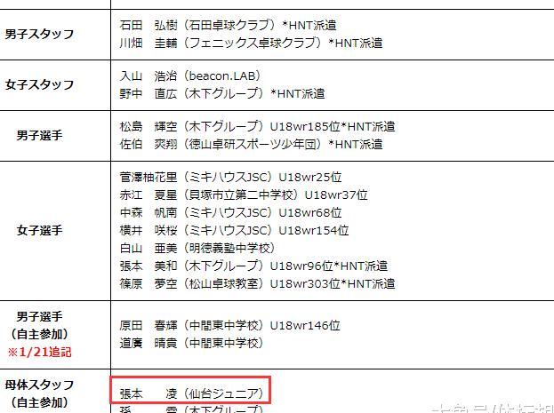 北京时间1月21日消息,日本乒乓球协会在官网上公布了下个月的参赛情况。其中,日本神童张本智和的妹妹张本美和将参加捷克青少年乒乓球锦标赛以及瑞典青少年乒乓球锦标赛。在随行工作人员中,笔者发现张本智和的母亲张凌出现在名单中,只不过张凌的名字已经改为了张本凌。而张本美和的中国籍教练的名字依然是孙雪。