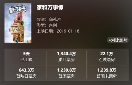可惜即便是强大的演员阵容,《家和万事惊》依旧票房惨淡,上映4天票房仅0.13亿,昨日票房跌至66万,古天乐无奈,票房亏本已无可避免!