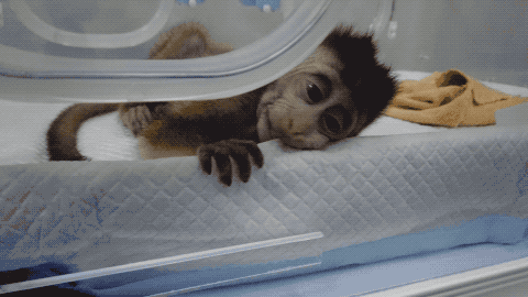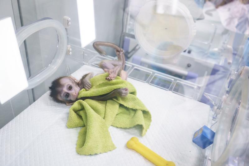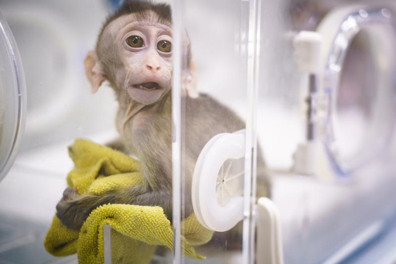 在中科院神经所非人灵长类平台,一只半岁多的猴子最近变得紧张焦虑,总是抱着头躲在孵育箱角落里,看见保育员会害怕地躲避。它是从一只生物节律紊乱的公猴的体细胞克隆而来,如今正显现出相似症状。
