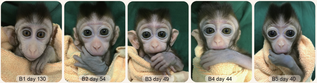 5只生物节律核心基因BMAL1敲除的克隆猴。中科院神经所提供