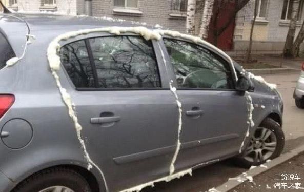原来是车位主人为了报复这小伙子而喷的“泡沫”。泡沫是一种附着力很强的化学物质。持续时间越长,粘附力越强。还会随着时间逐渐凝固、变硬就像水泥一样,这辆车上的就已经凝固。