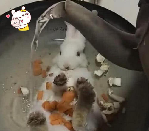 后来主人看到了这个场景后竟然还用胡萝卜丁和一些小碎白菜放在了里面,不少人都表示这是要把兔子给炖了吃了吗?看这情况真是让人觉得很可怕有没有?