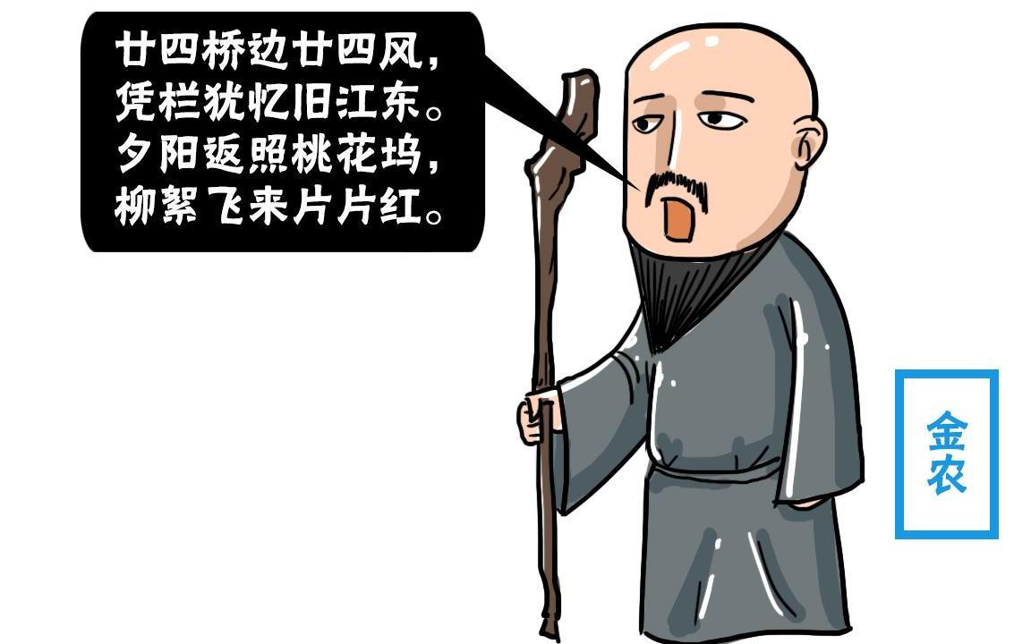 据说乾隆的这首《飞雪》传入民间后,被扬州八怪和扬州富商所效仿。当时有位富商随口来了一句:“柳絮飞来片片红”。其他人面带鄙夷的看着他,似乎在问:“柳絮怎么能是红的呢?真是暴发户、土老帽。”扬州八怪之一的金农立刻出来圆场,说这位富商是为了与古人相感应。原诗应该是:廿四桥边廿四风,凭栏犹忆旧江东。夕阳返照桃花坞,柳絮飞来片片红。