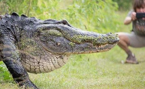 [分享]美国史前巨鳄突现野外草丛,游客见到却淡定拿手机拍照