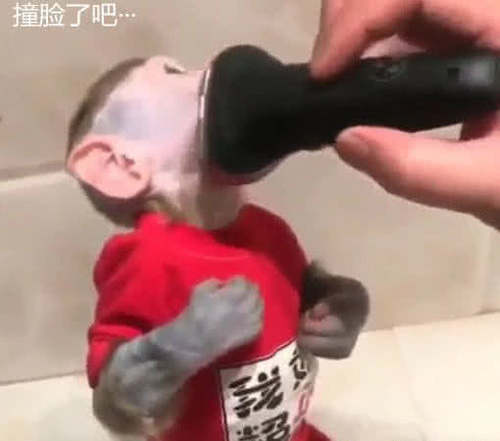 不过剃完之后怎么感觉有点奇怪呢?在我们的印象中猴子脸上都是有着很多的毛发,稍微修一修就够了,可是这只猴子就像个人一样,被主人给剃了一个短发。其实不得不说,这样猴子变得还真是十分帅气,下一此,主人是否可以考虑给猴子然一个奶奶灰色发色呢?