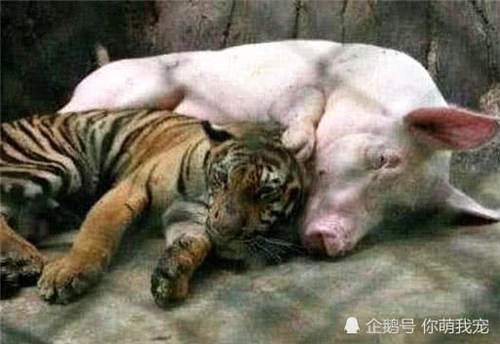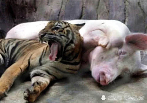 小老虎因为一出生就跟母猪一起生活,而母猪虽然知道小老虎不是自己的孩子,但从小喂到现在这么大也是有感情的了,两只动物每天生活起居都在一起,吃饭玩耍全靠在一起,有了感情,而为了让小老虎能被喂的个更好,母猪也是一样的被给予丰厚的食物,所以心情也相当好,两种生物能和平相处。